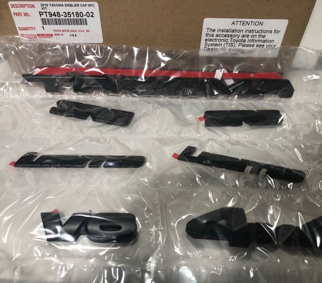 As a Toyota owner, you know you can depend on your vehicle for many miles to come. Toyota OEM parts will give you both peace of mind and total confidence for all those miles. Genuine Toyota Parts and accessories like this 2018-2023 Toyota Exterior Trim Emblem Overlays Black Tacoma for your 2018-2023 Toyota Tacoma vehicle have been engineered to meet Toyota’s safety, reliability, and functionality standards. Toyota Parts & Accessories Limited Warranty.